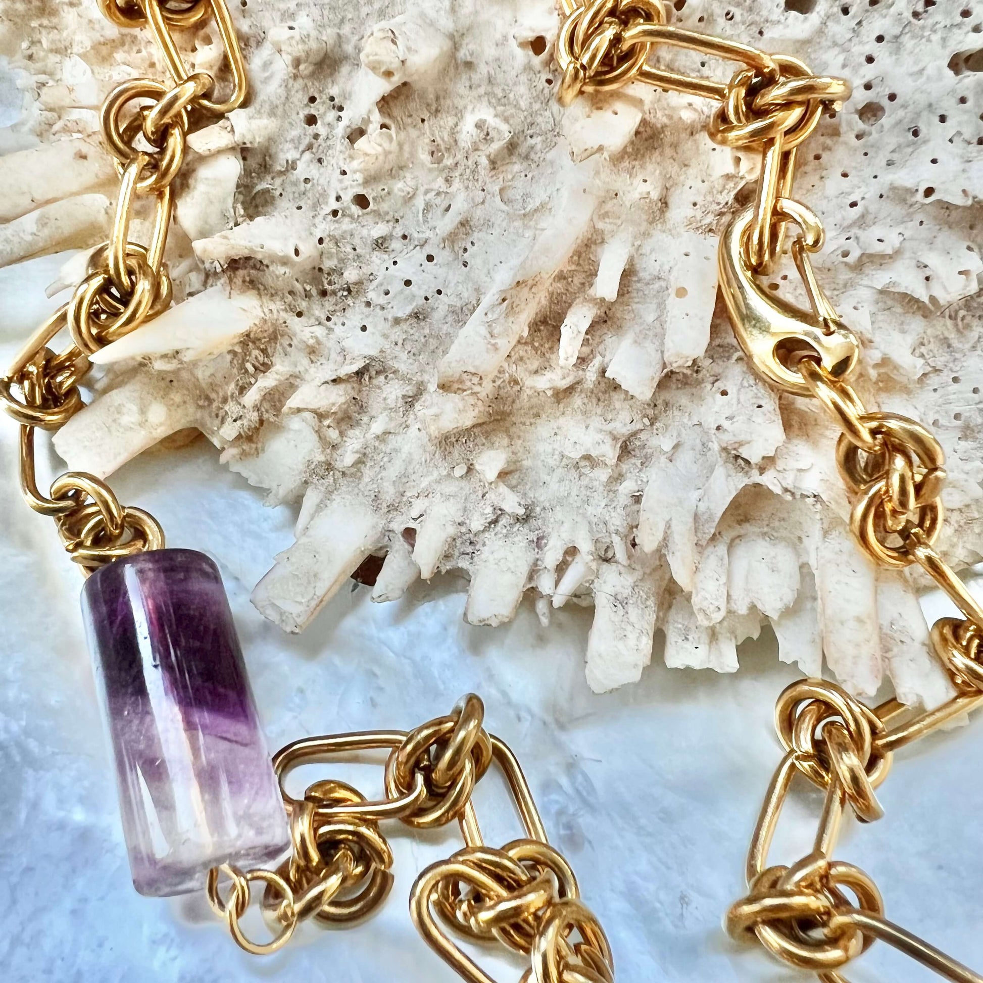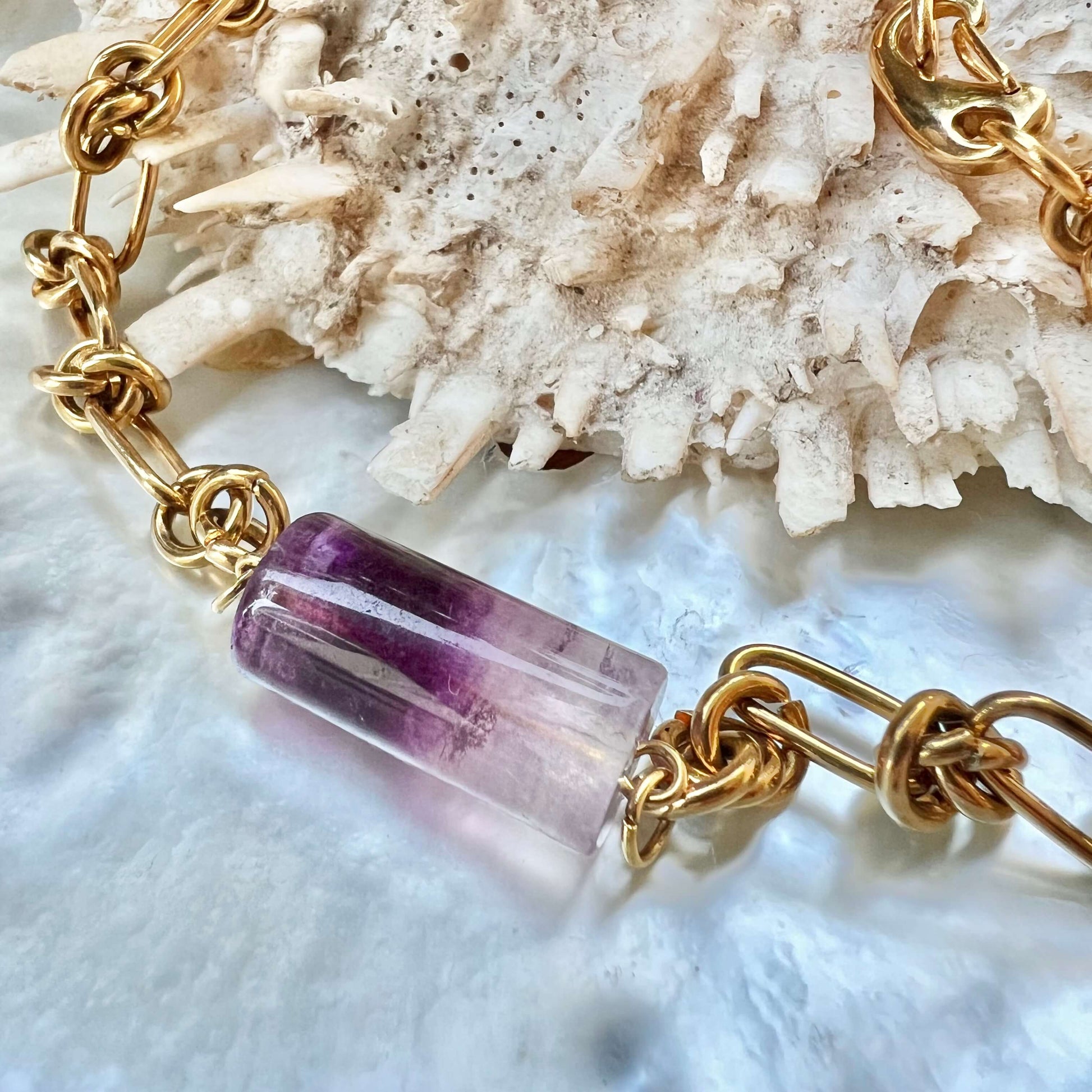 Pierre d’améthyste /Nacre de Tahiti / Acier inoxydable.