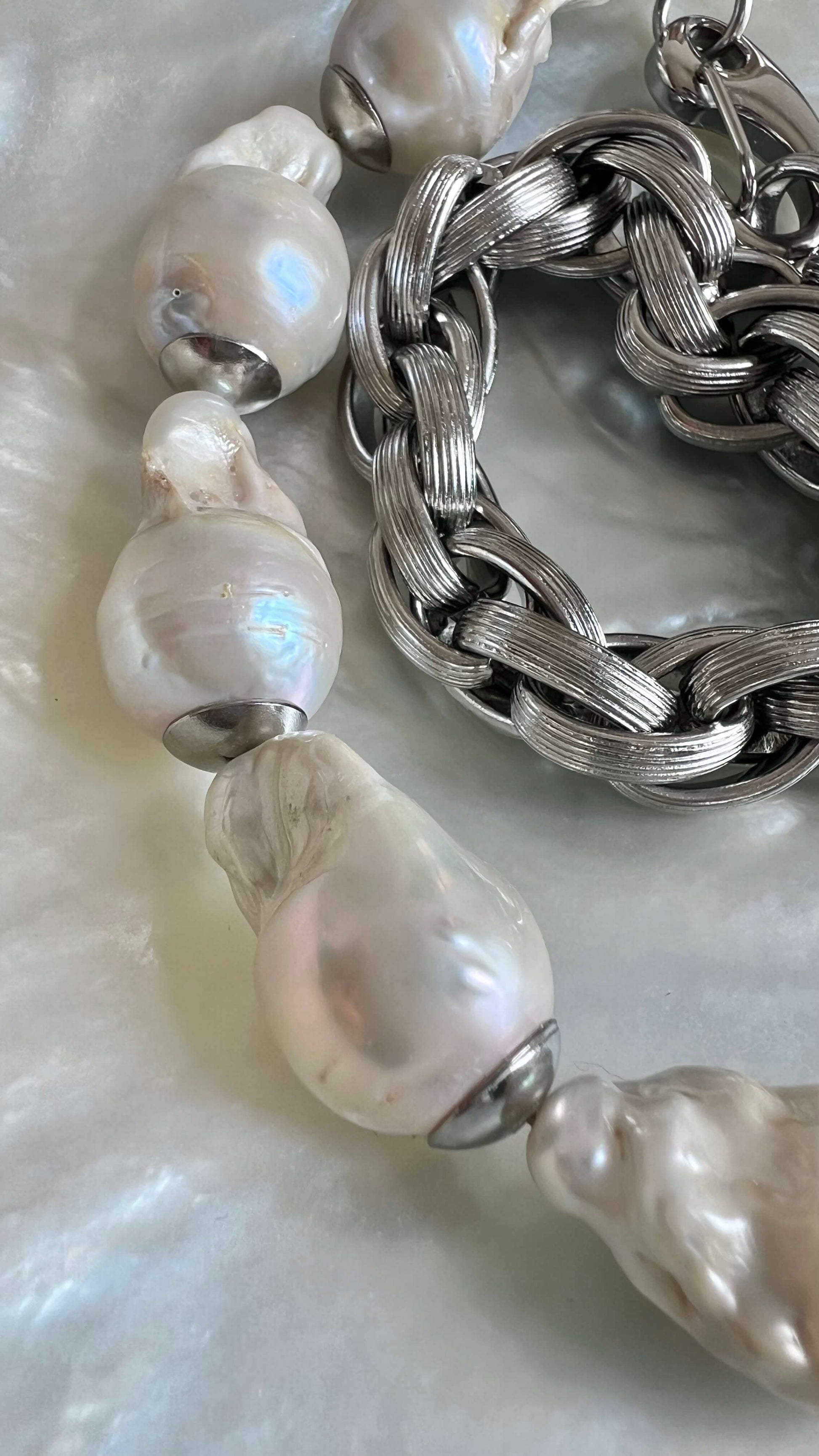 Découvrez notre must-have, le collier . Composé de perles Edison nacrées et d'une chaîne métallique brute aux maillons imposants, il apporte une touche décalée à vos tenues. Portez-le de 2 façons différentes pour un effet pièce maîtresse.